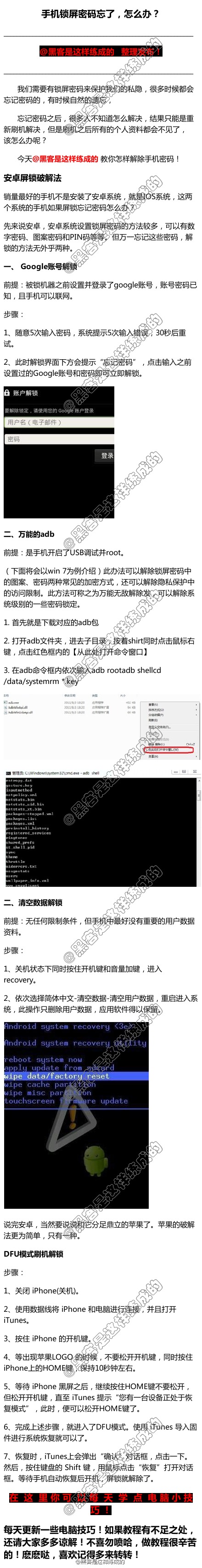 【手机锁屏密码忘了怎么办?】我们需要有锁屏密码来保护我们的私隐,那如果密码忘记了怎么办呢?今天分享几种解除锁屏密码的方法给大家,小伙伴们还不赶紧收了!
