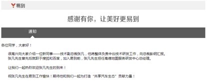 10月31日,易到官方宣布,高德地图服务研发中心总经理张凡加盟易到,担任技术副总裁,向总裁彭钢汇报。