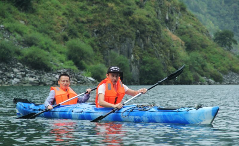 上白腊海因位于白蜡寨上方而得名,长900余米,宽250米,面积101亩。水域地处狭窄的两山之间,峰峦回映,分不清哪是水、哪是天、哪是山,人在其中,就像置身童话世界一样。水中藻类丛生,苔藓密布,在同一片水中呈现了墨绿、深蓝和翡翠多种色彩,无论是旭日初照,还是夕阳撒金,天晴下雨或者春夏秋冬,总是景随心走,能让你想起"湖光潋滟轻纺好,山色空蒙雨亦奇,欲把西湖比西子,浓妆淡抹总相宜"的诗句。