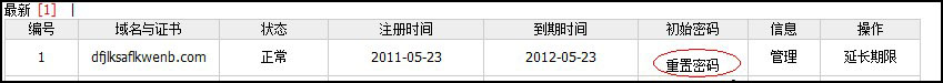 会返回到域名管理列表后,再点击“重置密码”,即可用新的密码来登陆管理域名了。如图: